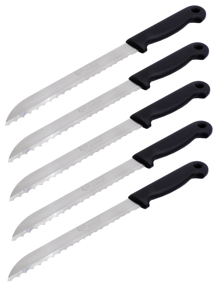 Das original Brotmesser von H. Herder Solingen vereint die bewährte Solinger Klingenexpertise mit einem funktionalen, pflegeleichten Design. Dieses Bandstahlmesser ist ein zuverlässiges Werkzeug für den täglichen Gebrauch und überzeugt durch seinen scharfen Wellenschliff und seine praktische Handhabung.